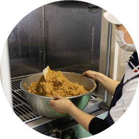 クッキー生地を棒状に伸ばしたり、丸くしたり、しぼったりします。