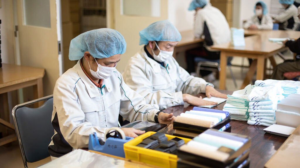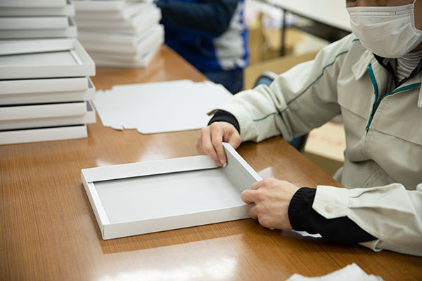 箱折りやタオル入れなどの作業