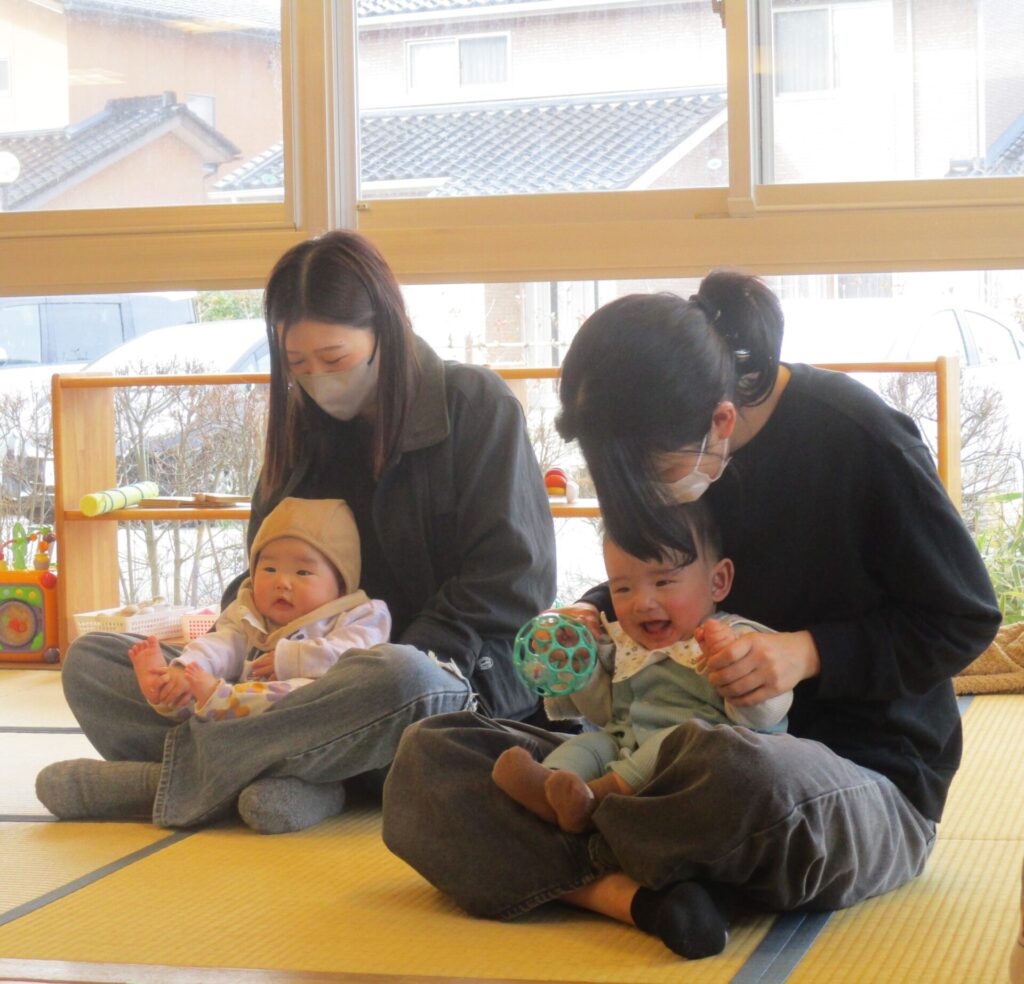 ひなたぼっこ0歳児クラスにかわいいお友達が6組遊びに来てくれましたよ。