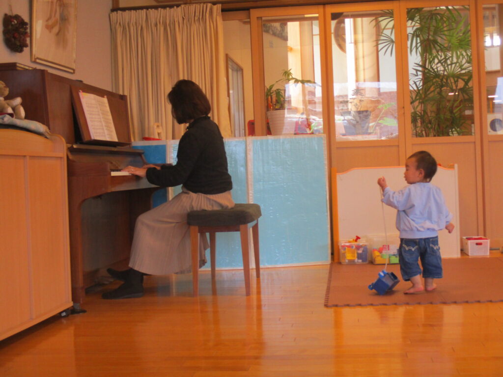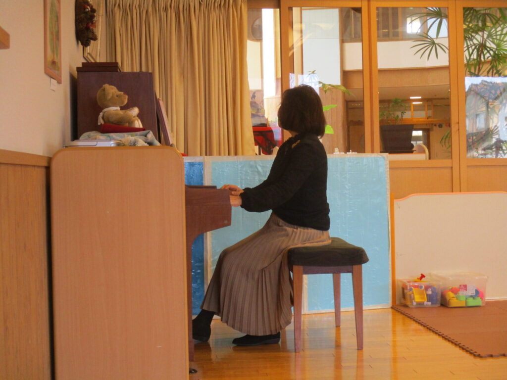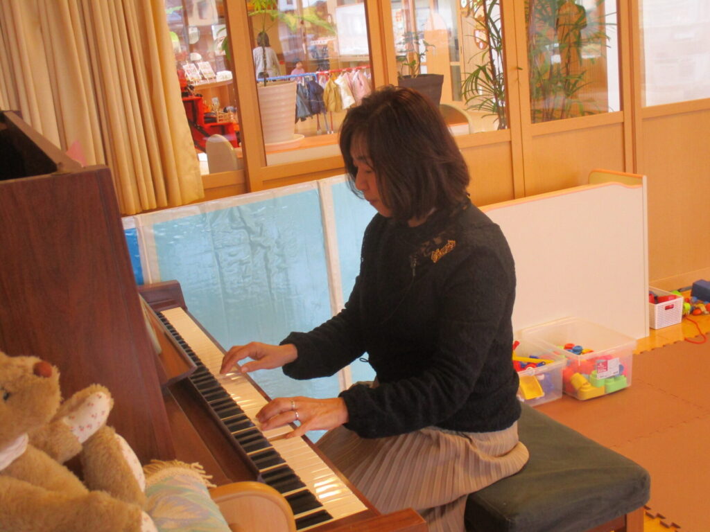 今日はあきちゃんコンサートがありました。あきちゃん先生のピアノに合わせてリズムあそびをしましたよ。