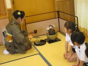 畳の部屋やお着物、お茶会の雰囲気に自然と背筋がピンと伸びる子どもたちです。