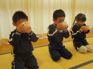 みずきこども園では午後から年長児ひまわり組のお茶会がありました。