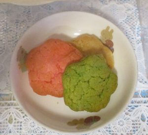おやつの花形クッキーが色とりどりでかわいく、子どもたちも喜んでいました。