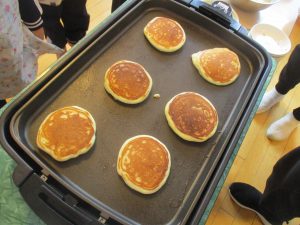 先生がしゅ!っとフライ返しで裏返すと、「すごーい!」と大喜びでした♪