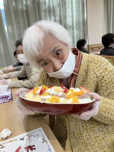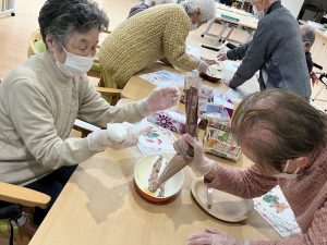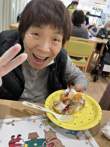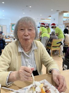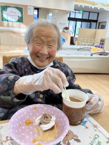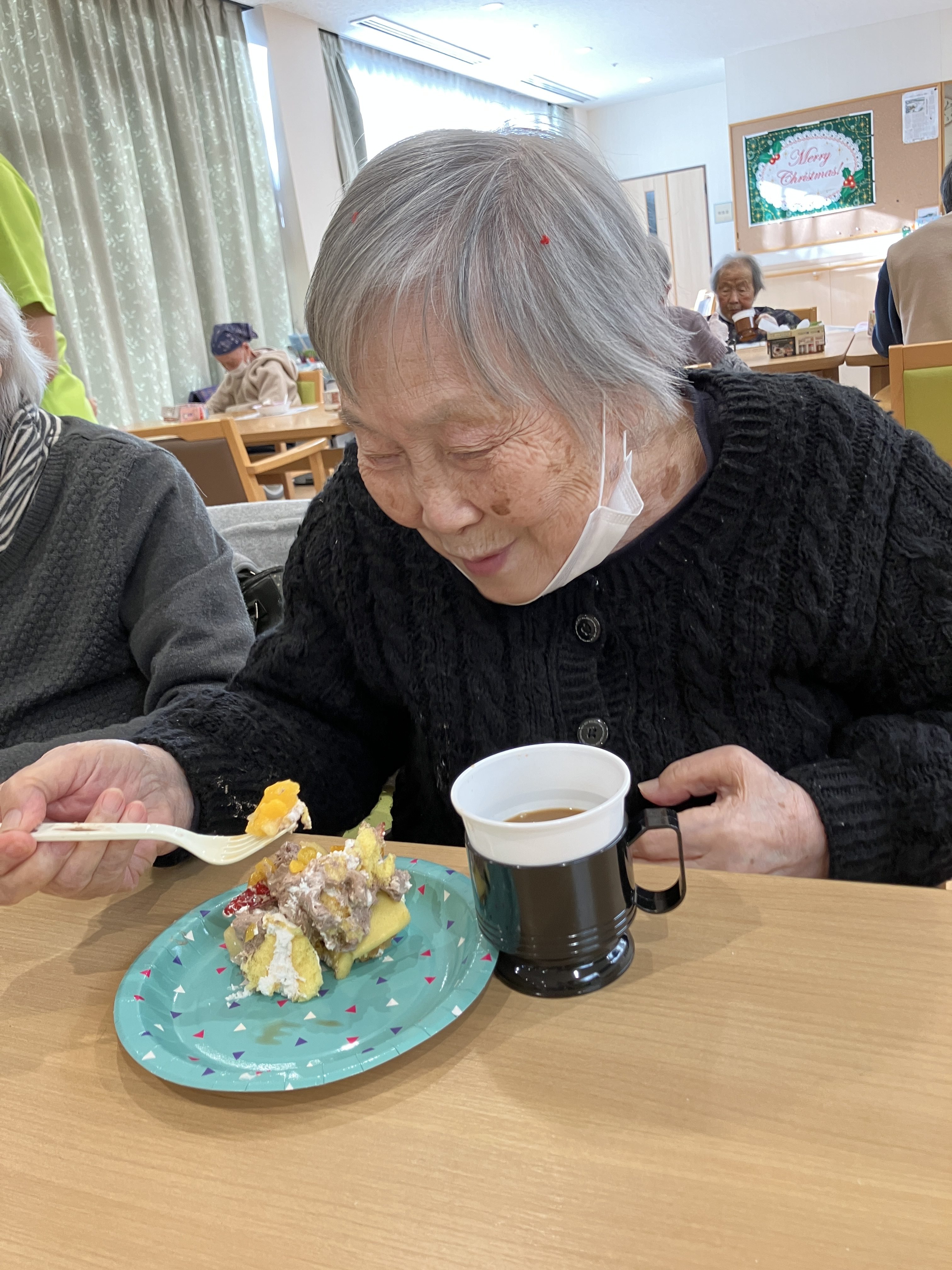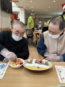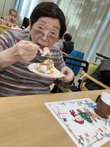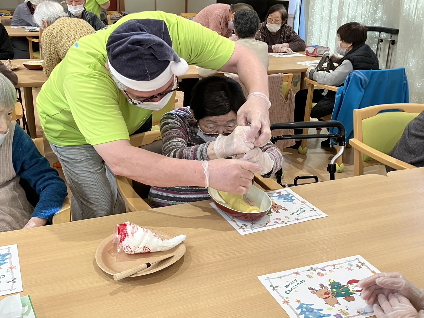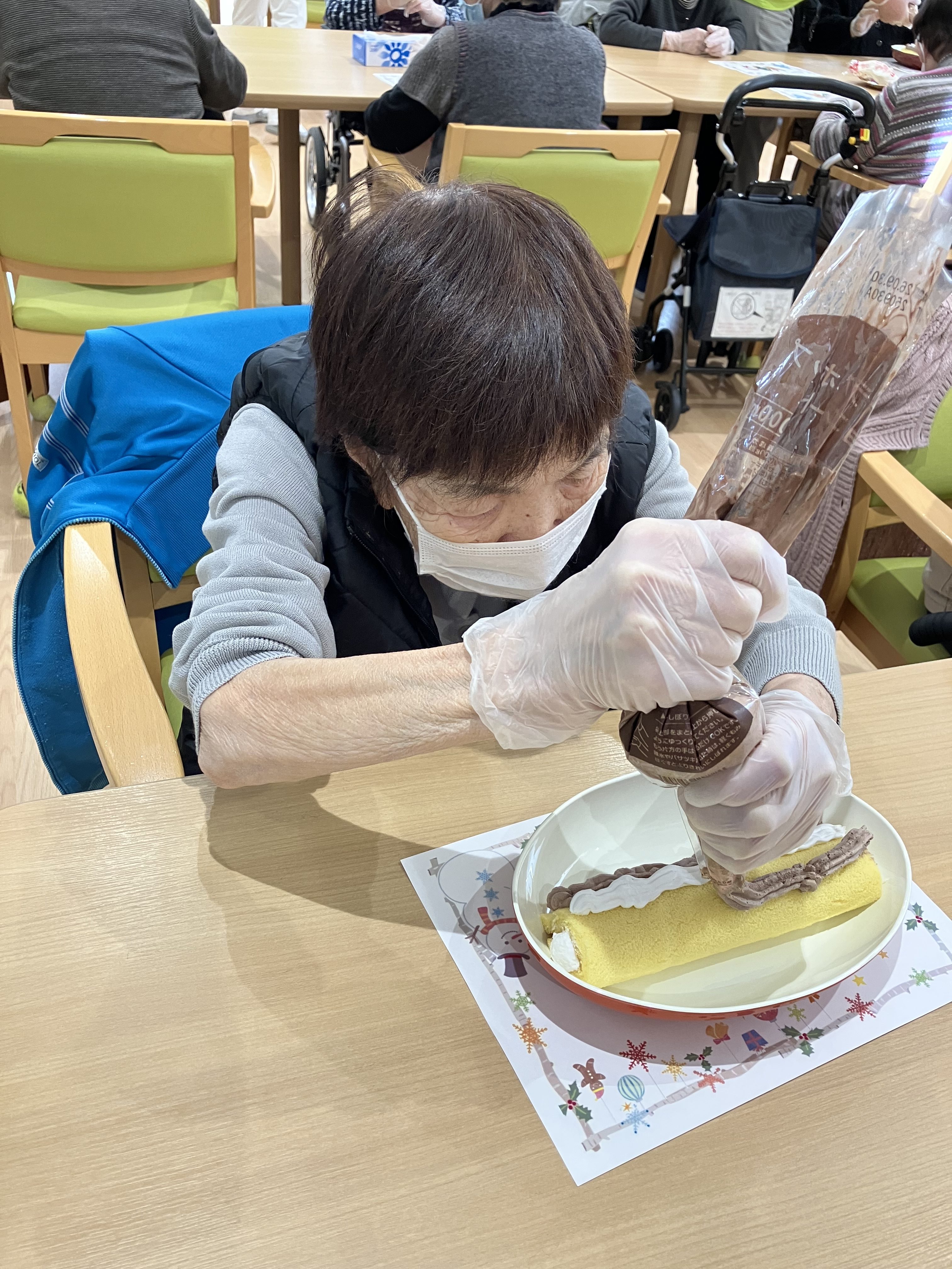 クリスマスと言えばブッシュドノエル(切り株ケーキ)を利用者さんで作ってもらいました。