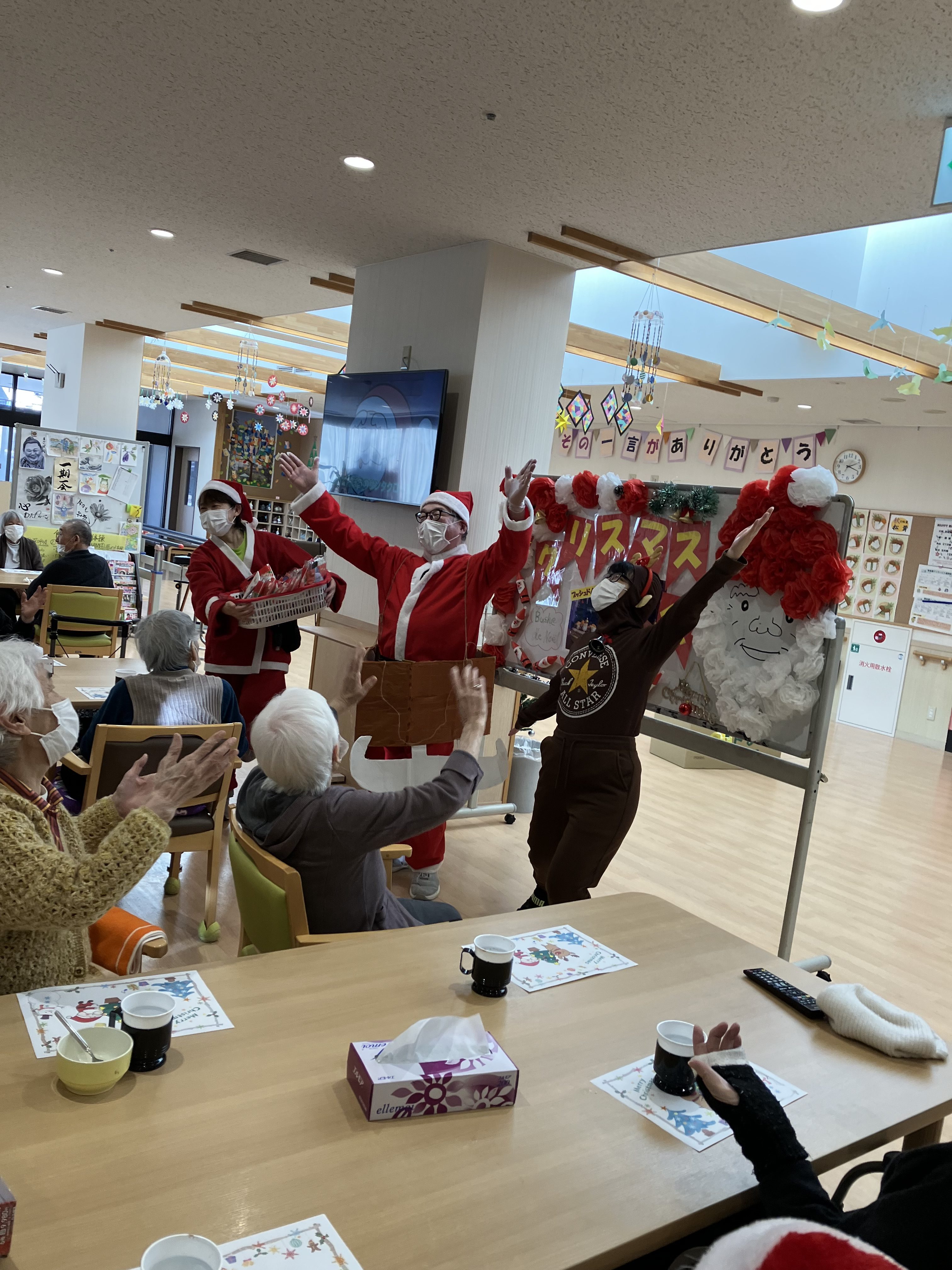 の、前にサンタクロースとトナカイがやってきたーー!!オリティの高さに皆さん大感激!!