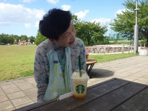 公園のベンチでスターバックスの期間限定ドリンクを味わう組に分かれてのんびり過ごしました。