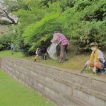 さっそく、溝にゴミを見つけた、プロ庭師(施設長)