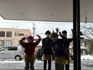 本日は、金沢福祉専門学校の実習生さんが2名加わり、職員と一緒に鬼に扮し