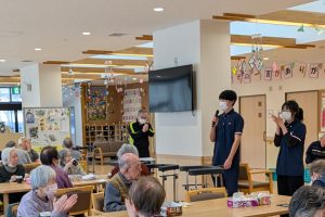 実習生のお二人の挨拶に、利用者の皆さんより拍手が!卒業後、お待ちしてます😊