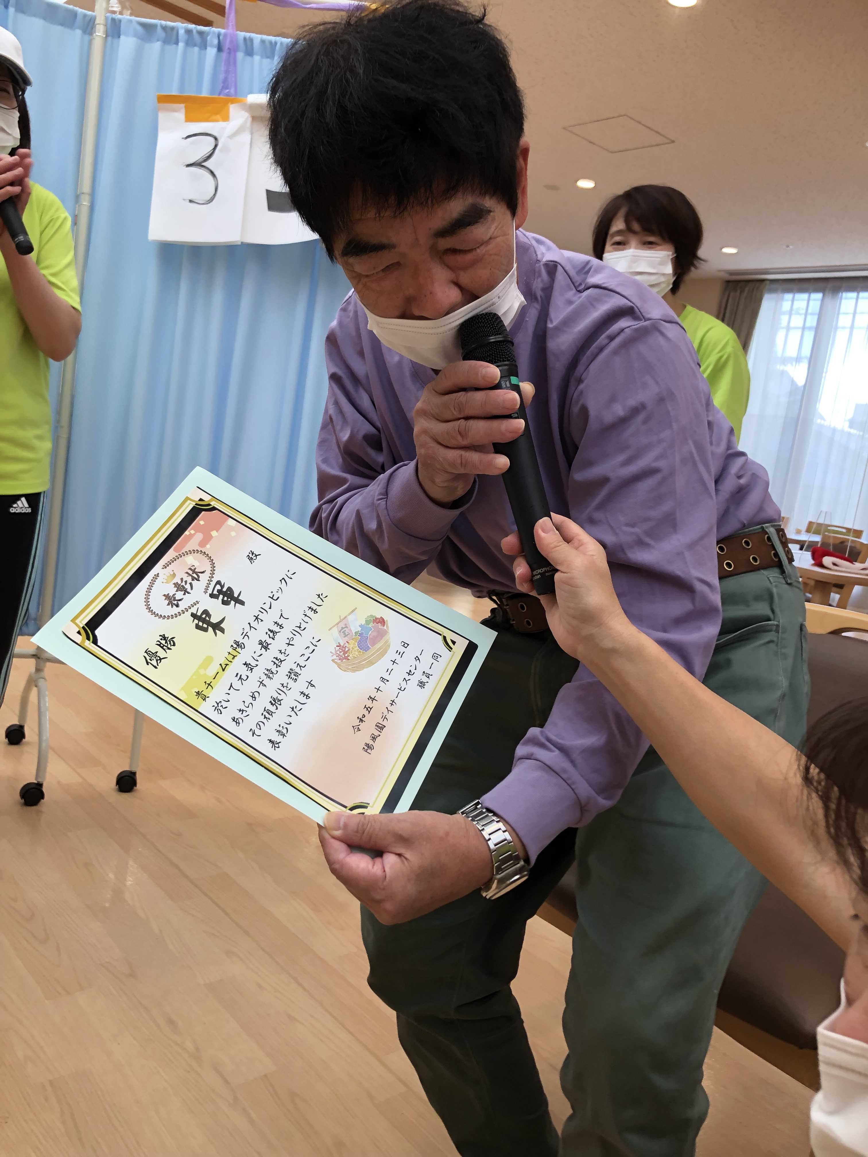 ご利用者に箱からお題を引いていただき、各チームの職員が猛ダッシュで借りに行きました!