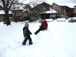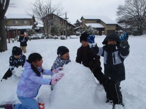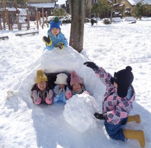 子どもたちは園庭や隣の公園で雪遊びを楽しんでいます。