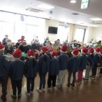 ①かわいいサンタの帽子をかぶった園児たちが来てくれました🎄