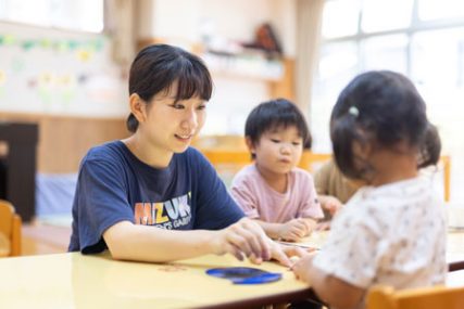 みずきこども園に就職して、短期大学までの勉強やたくさんの実習の経験を活かして楽しく働くことができ、とてもよかったです。先輩方の保育も観察し、様々なことを学ばせていただいています。