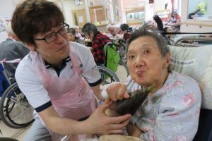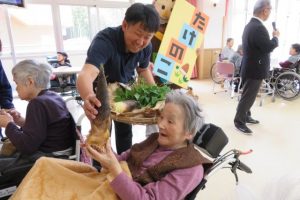 施設長のご挨拶、栄養士のメニューの説明の後、たけのこ尽くし料理をいただきます。