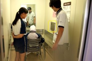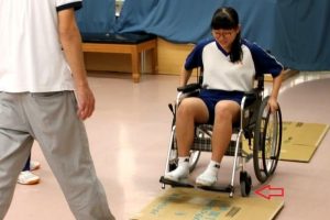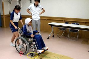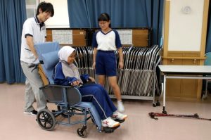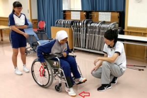 車いす操作方法~介護のお仕事体験~野田中学校