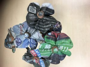 新聞紙のコサージュです!!