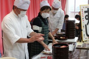 「すし捨涌波店」様による寿司握りパフォーマンス。リズムにのった流麗な手さばきを見せていただきました。