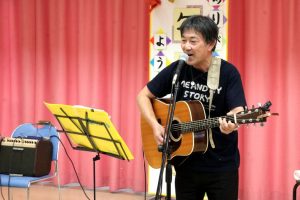 「JOE KAZU」様のライブステージ。童謡、唱歌からJ-POPまで、幅広いジャンルの曲を、歌とギターとハーモニカで聴かせていただきました。