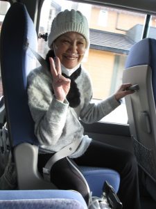 バスの中から「何を買おうかな~」と楽しそうな様子☺