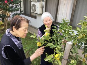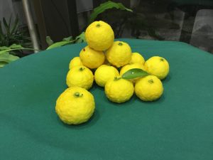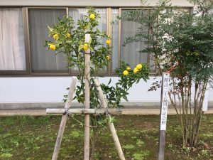一昨年の開設25周年記念に植樹したゆずの木は、たわわに実りました。