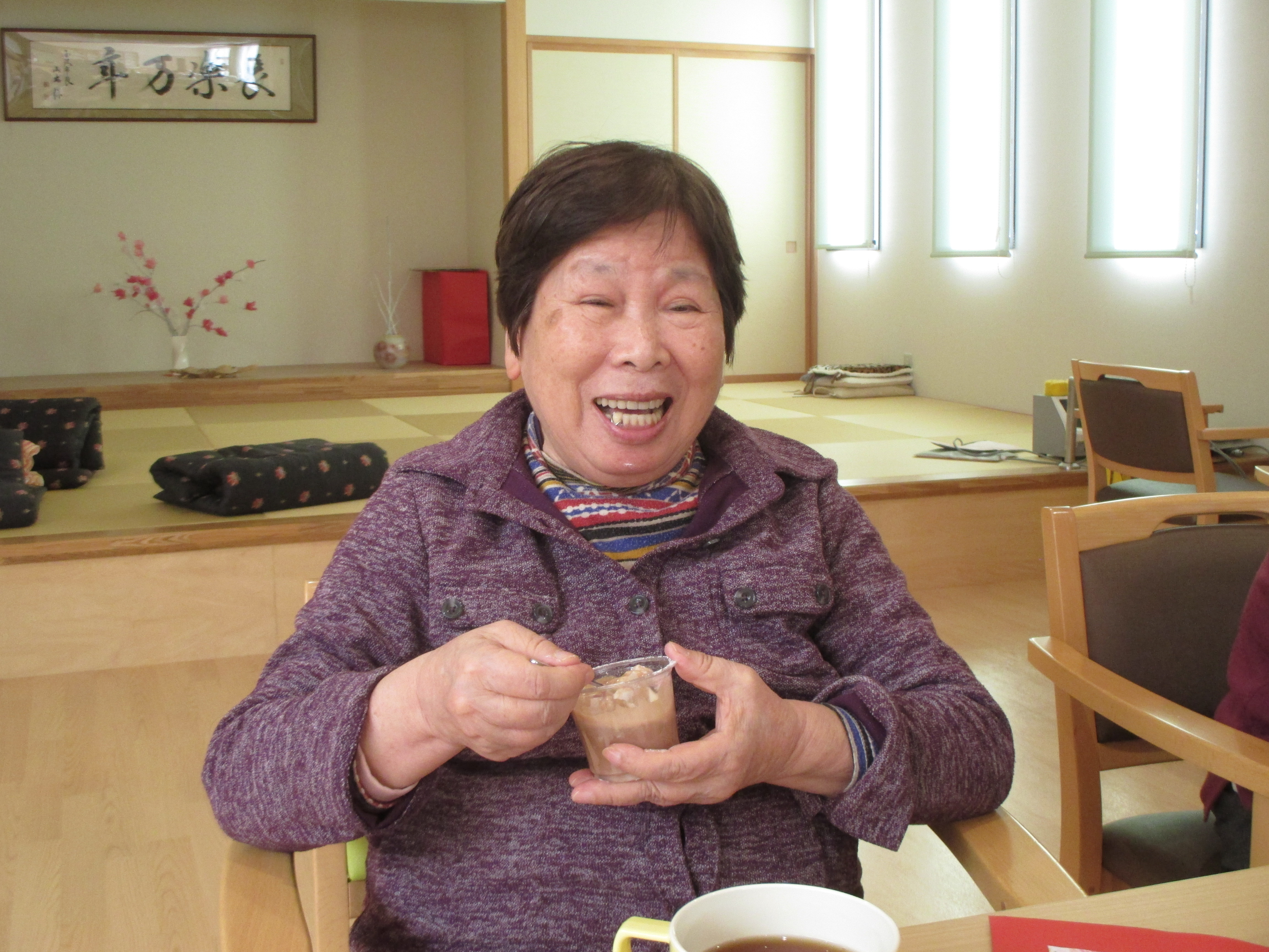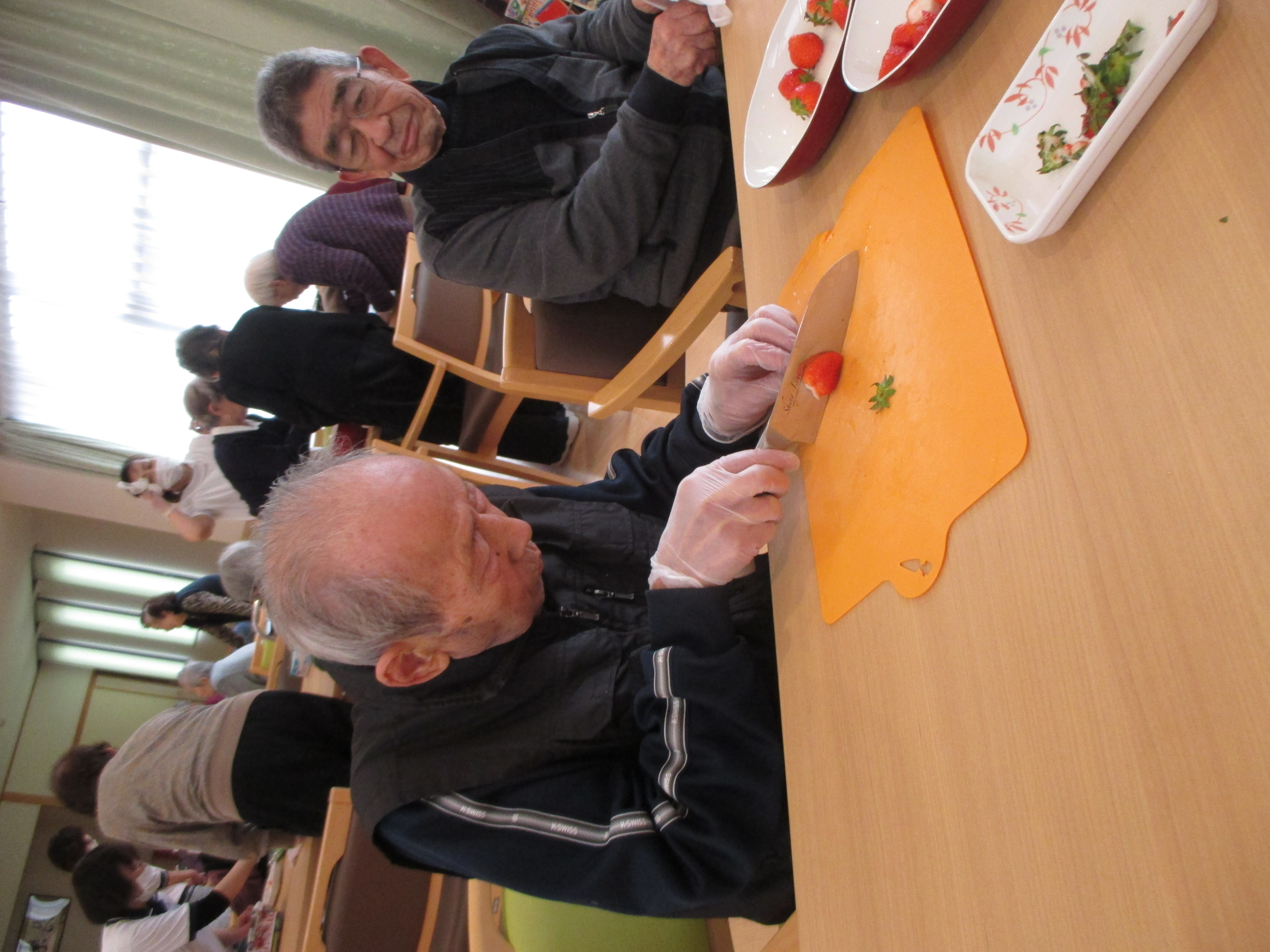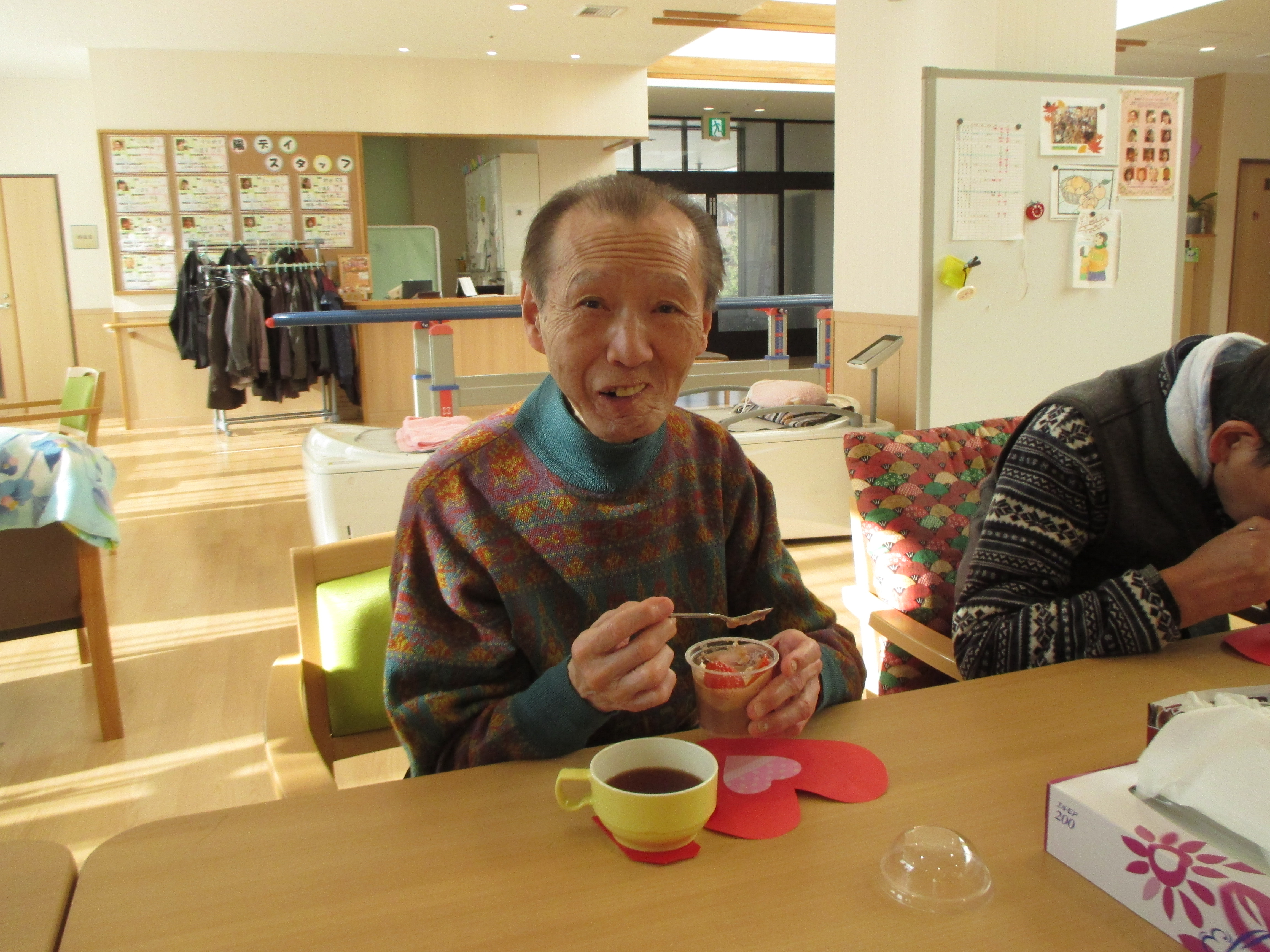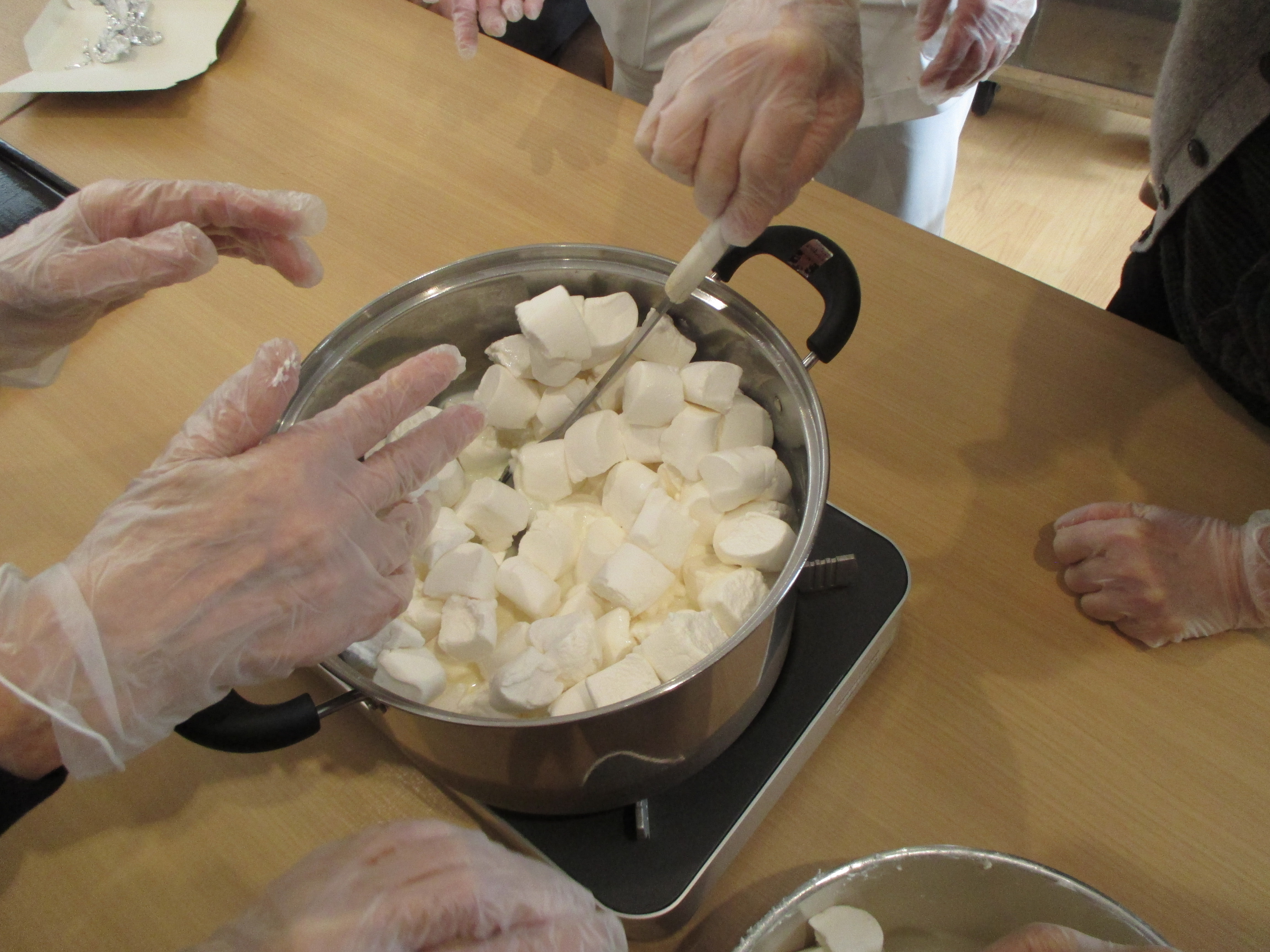 作ろう食べよう会 ~バレンタイン~ 陽風園デイサービスセンター2020年2月14日 本日はバレンタインデーです!! 陽風園デイサービスでは、“マシュマロDEチョコムース”を作りました♡ ⇐ 材料と手順はこちら… 今日の主役のチョコレートを細かくします! 特大のマシュマロも小さくカット!! 牛乳、マシュマロを鍋に入れて溶けるまでかき混ぜます! 男性陣はイチゴをカット!おみごとな包丁さばき!! 出来上がった生地はカップに流し込みしばらく冷やします!! イチゴ、飾りチョコを盛り付けて 完成 !! 美味しく頂きました!!