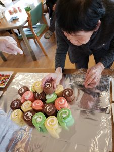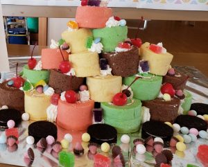 小さなロールケーキを積んでタワーのようにしたらいいね♬