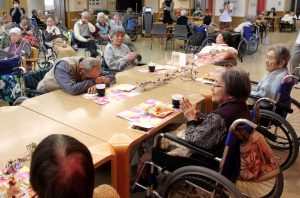 ハッピーバースディのお歌を、ご利用者様と職員が一緒に歌います。