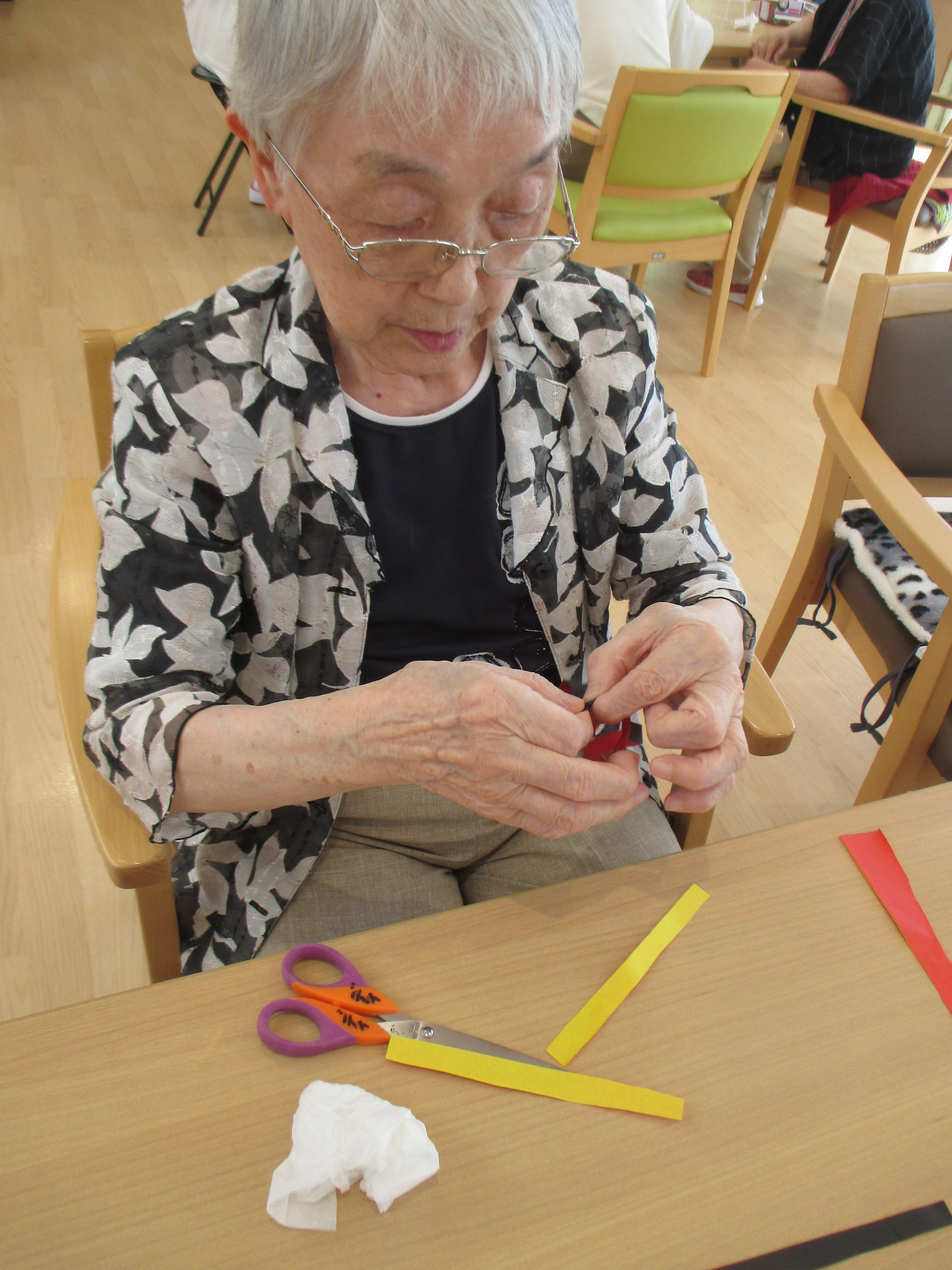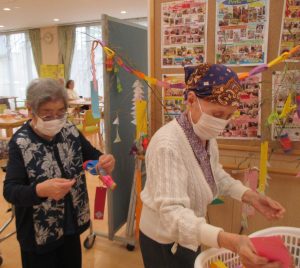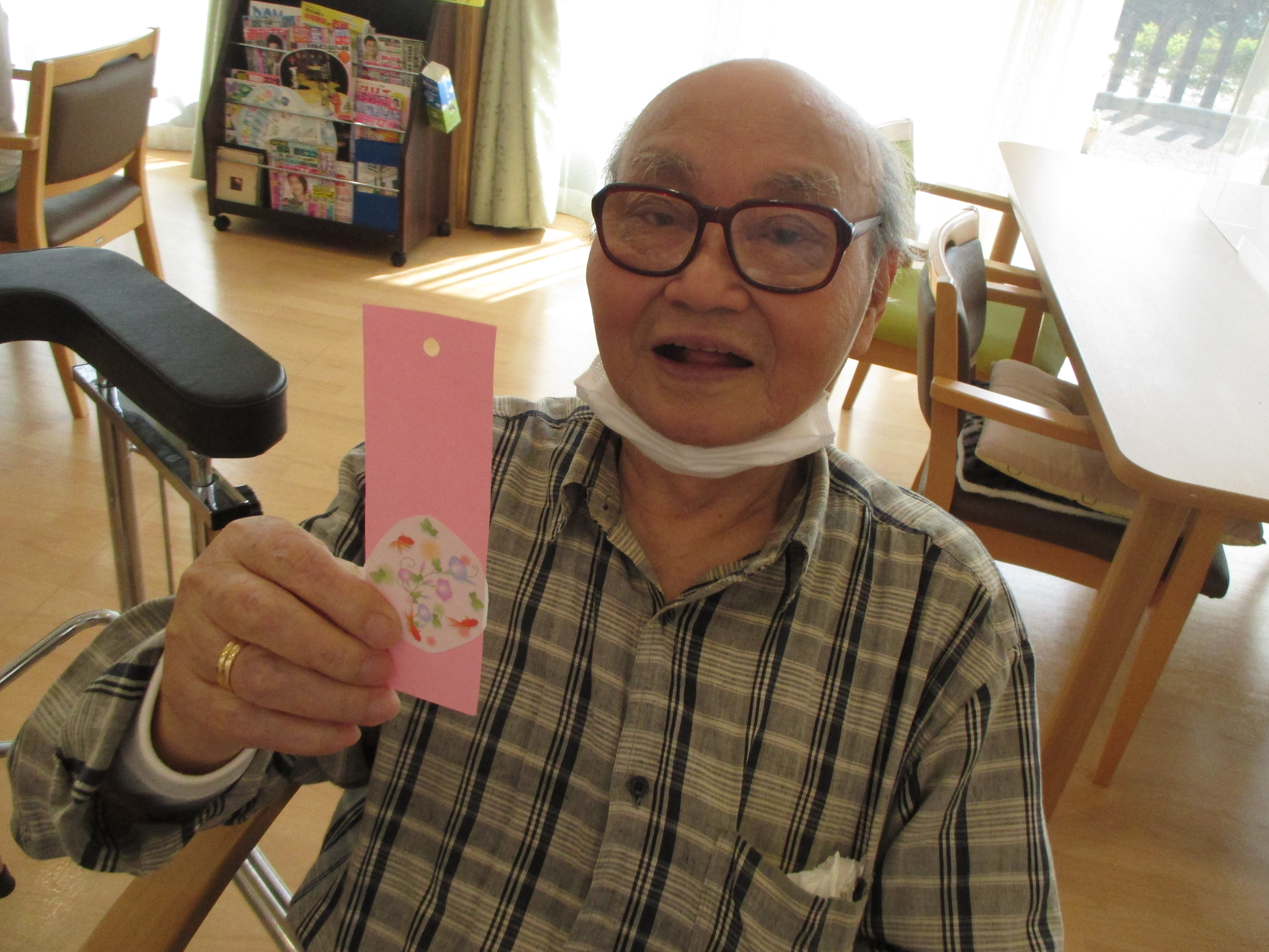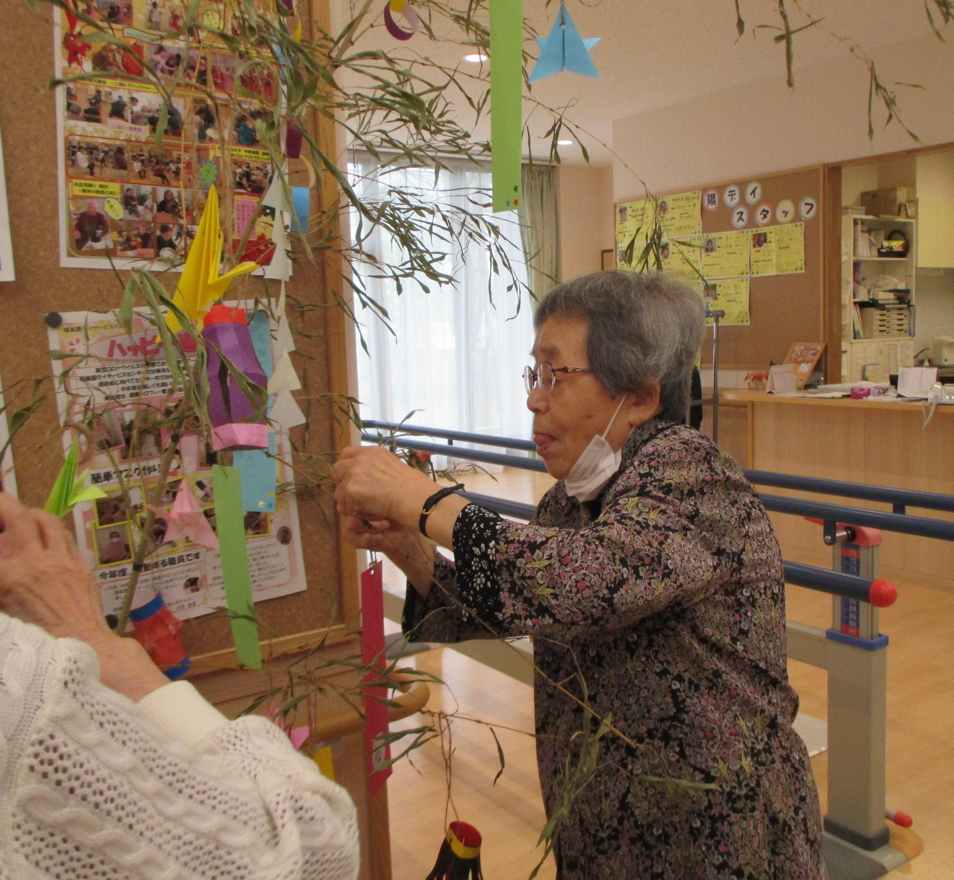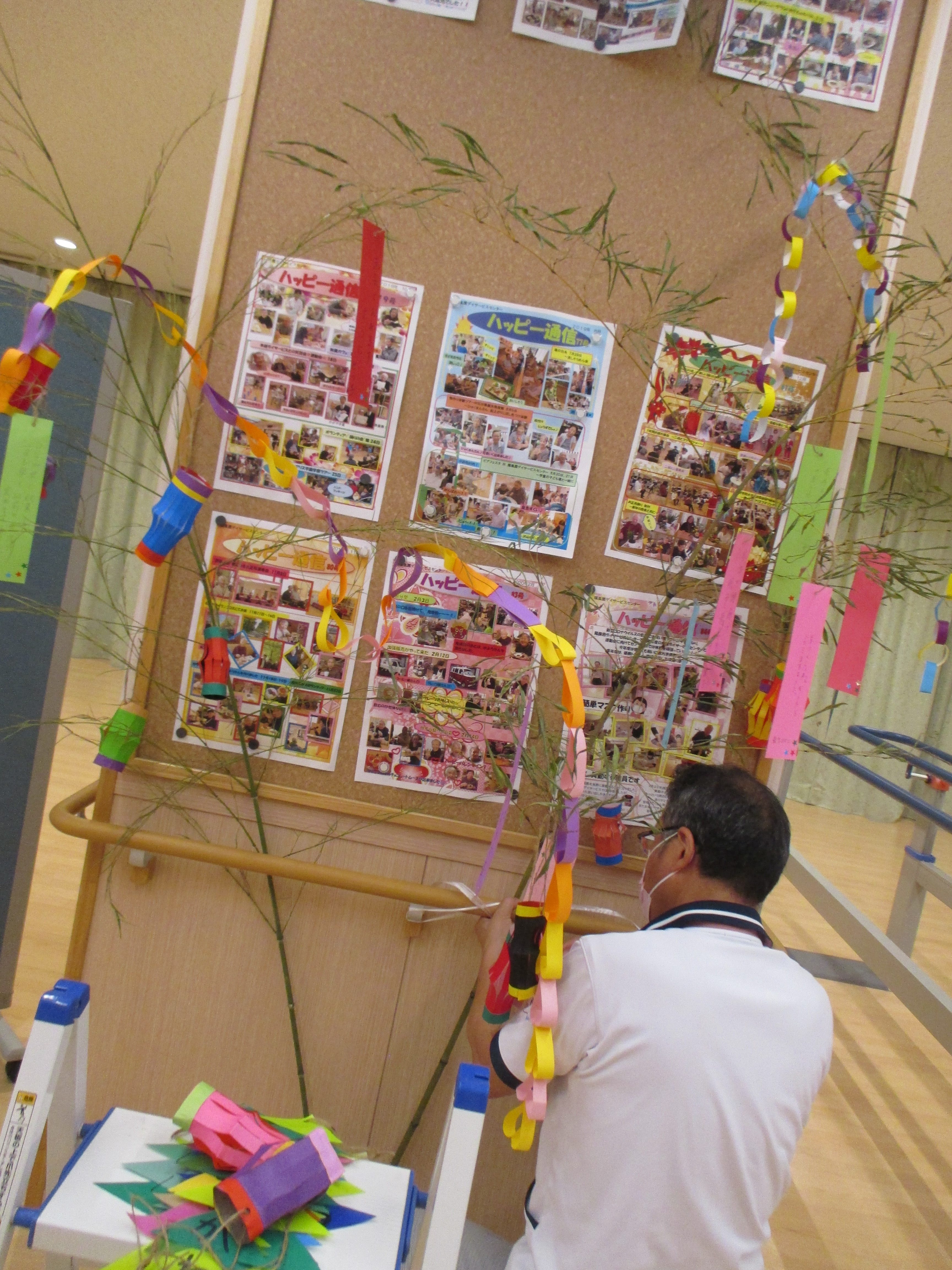七夕★ 陽風園デイサービスセンター2020年7月13日 先週は“七夕週間”ということで、陽風園デイサービスセンターでも、七夕飾りを飾っていました。 ご利用者の皆さんに、短冊を書いていただいたり、飾りを作ってもらったり、きれいな七夕の笹飾りが出来ました。 『みんな元気で暮らしたい』 『お金がたくさん貯まりますように』 『三人の家族や孫たち、健康で笑顔で暮らしてね』 ステキなお願い事がたくさんでした★″ 雨続きの空模様ですが、皆様のお願い頃が叶いますように...