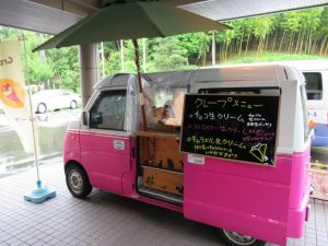 施設正面にはジュースクレープの移動販売車にもお越しいただき、