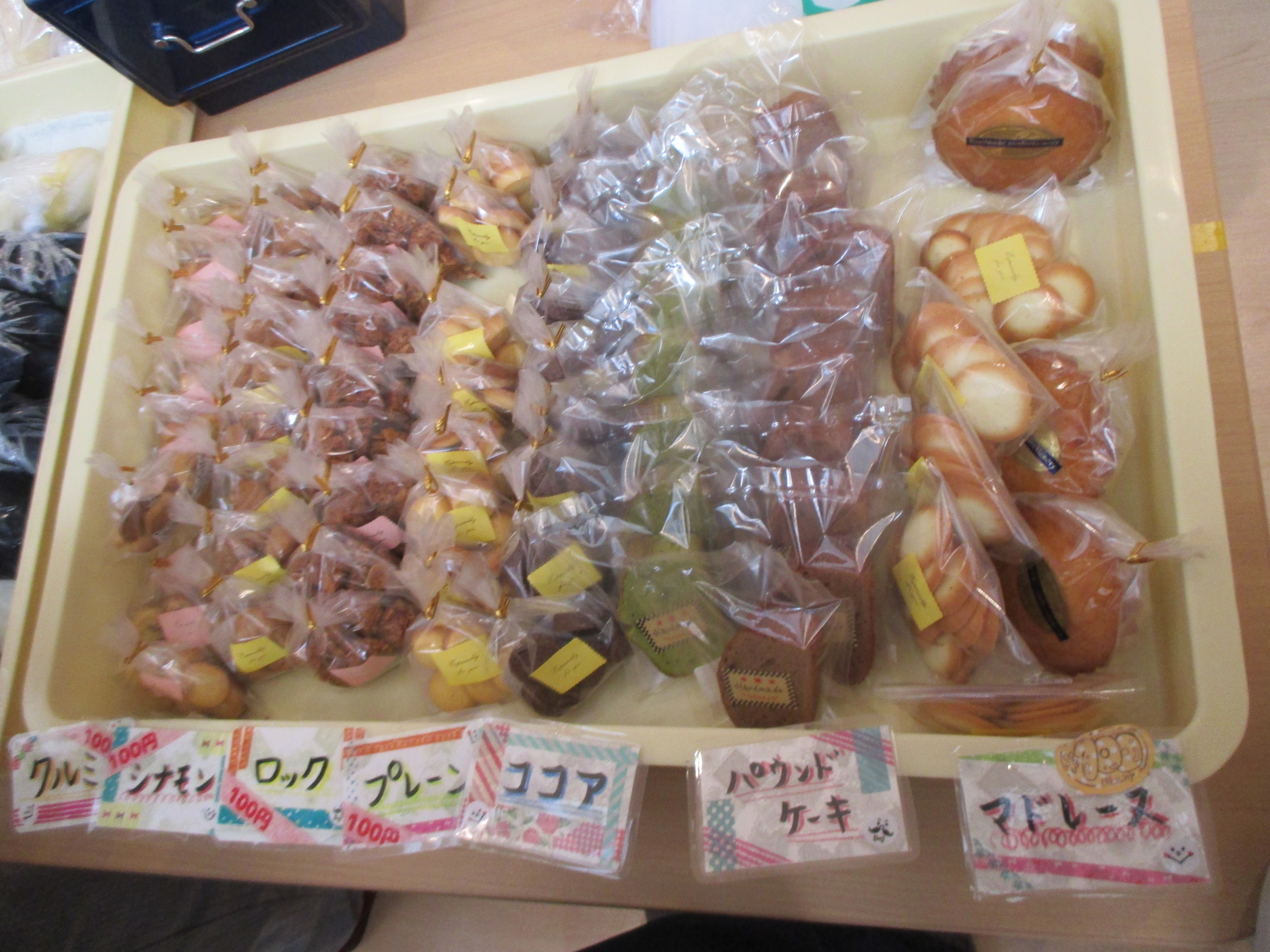 ということで、昨年好評でした出張販売ですが、今年はあけぼの作業所さんに、お願いをしたところ、たくさんの焼き菓子やお漬物を持って、出張販売に来てくださいました!
