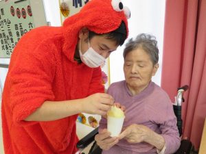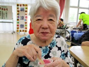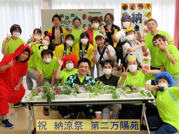 大きな声で唄うことも難しい状況の中で、何かご利用者様に笑顔を届けられないかと逡巡した挙句、納涼祭を中止にするのではなく、縁日の雰囲気だけでも味わってもらおうと企画しました。感染防止対策を十分に施した施設ではありますが、一旦新型コロナウイルスが入ってくれば、肌に触れる介護の性質上、防御は非常に脆弱なので、この納涼祭の後で、体調不良者が一人も出なかったことに安堵しました。ソーシャルディスタンスを突き詰めれば介護が成立しないという悩ましい現実があります。