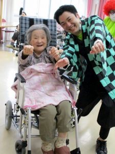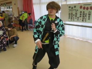 さて、余興です。ムロツヨシさん登場ですか。いえ、鬼滅の刃の竈門炭治郎(介護職員)でした。カッコいいなあ。