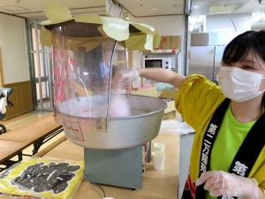 綿菓子もご用意しました。黄色とピンクをご用意。2人の管理栄養士が頑張りました。