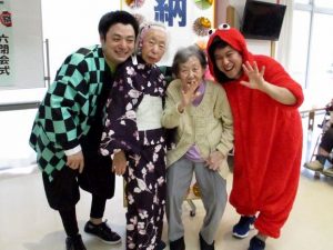 職員による仮装大会。可愛いひ孫さん登場(副施設長) と、父兄によるパパラッチ(介護長)