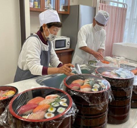 午前中は涌波にある「すし捨」に来苑して頂き、感染症に配慮し密を避けた形で「寿司の実演会」