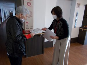 また、昼食前には先日行われた「第35回社会福祉施設利用者余技展覧会」の表彰式が全館放送にて案内され、施設長より後程賞状が手渡されました。周りの方から拍手もおくられ笑顔で賞状を受け取る姿が印象的でした。