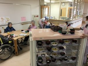 食事が運ばれてくるまでの時間は、余暇として機能させたり、顔なじみの入居者と談笑したりして過ごしています。