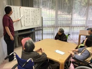 季節の季語や果物、花など、なぞなぞで脳トレも行います。