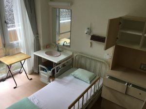 これは左手にある「従来型個室」真四角に近い居室なので、ちょっと手狭さを感じるかもしれません。