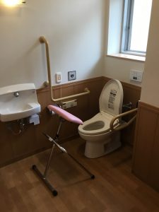便器の前に置いてあるものは、「楽助さん」姿勢補助の福祉用具です。