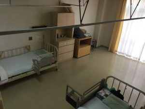 ここが、「山側のA棟」です。右手に一人部屋が6つ。2階には8つあります。(全14床の個室です)