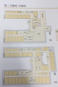 次はエレベータを降りて、左側。食堂を背にすると、右に曲がる見えない廊下です。