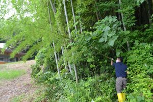 そのお願いを書く短冊を飾る竹を取りに、竹とりの翁・・・いえ、H相談員に依頼し、筍でお世話になった、裏山へ!