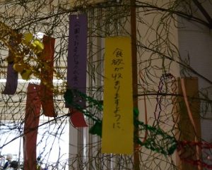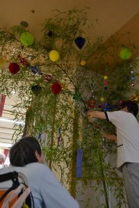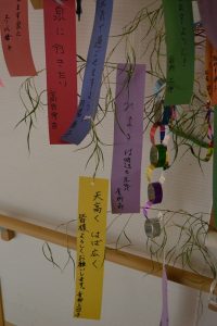 早速、飾りつけと願い事を書いた短冊を飾ります。
