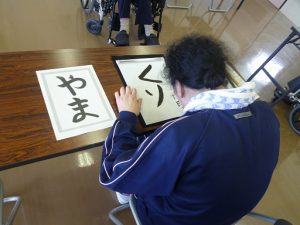 こちらは、「私、自然が好きだから“山“と書きたい!」との事前の要望に、職員も気合を入れて見本を準備するも…