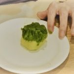 蒸かした2種類の色のさつま芋を、ラップの上において・・・