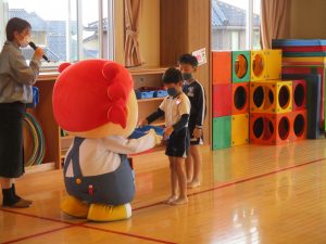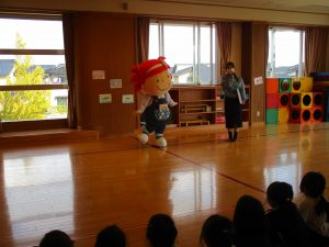 金沢市農業水産振興課より、さっちゃんこと「さかなざわさちこ」ちゃんが、みずきこども園へ遊びにきてくれました。