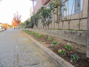 ふかふかの土のお布団が出来てから可愛いお花たちを植えました。寒い冬が来る前にふかふかお布団で元気に根を伸ばしてくれると良いな~と思いながら、毎日お世話をしています。