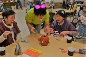 職員にアイマスクをさせて・・・